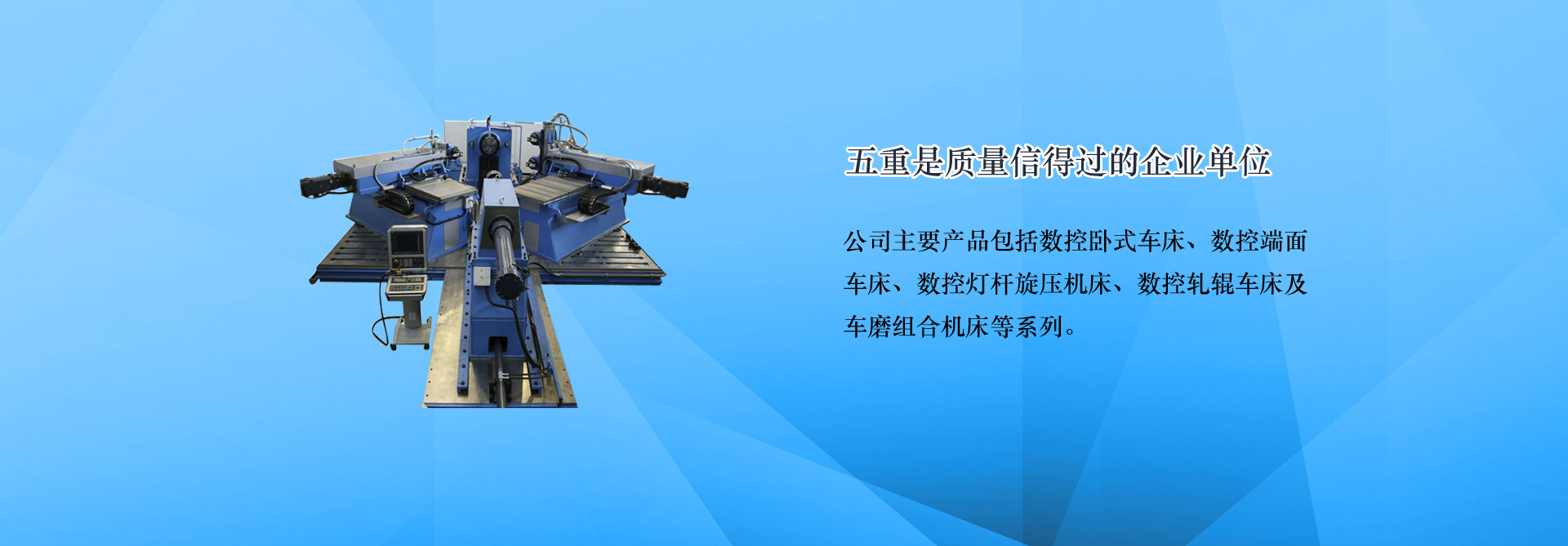 ÇൺÎåÖØÊý¿Ø»ú´²ÓÐÏÞ¹«Ë¾£¨ÔÇൺµÚÎåÖØÐÍ»úе³§£©ÊÇÒ»¼Ò¼¯¿ÆÑУ¬Éú²ú£¬ÏúÊÛΪһÌåµÄÊý¿Ø»ú´²Éú²úÆóÒµ£¬Ö÷Òª²úÆ·£º¶ËÃæ³µ´²,Êý¿Ø¶ËÃæ³µ´²,³µÏ³¸´ºÏ»ú´²,³µÄ¥×éºÏ»ú´²,½º¹õÄ¥´²,µØ°õÒ£¿ØÆ÷,Êý¿ØÐýѹ»ú¡£Á¬Ðø¶àÄê±»ÆÀΪÇൺÊÐÐÅÓÃÆóÒµ¡¢ÖÊÁ¿Ðŵùýµ¥Î»¡£¹«Ë¾Î»ÓÚÇൺ¹ú¼ÊÖÐСÆóÒµ¹¤ÒµÔ°£¬µØÀíλÖÃÓÅÔ½£¬¾àÁ÷ͤ·É»ú³¡½ö10¹«À¼ÃÇà¡¢ÈÙÎÚ¡¢ÇàÍþµÈ¶àÌõ¸ßËÙ¹«Â·¾¹ý£¬½»Í¨Ê®·Ö±ãÀû¡£... [MORE + ]